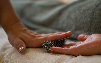 Μασάζ παλάμης με ειδικά εργαλεία που προσφέρει ρεφλεξολογική χαλάρωση, ευεξία και συναισθηματική ηρεμία.