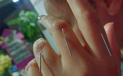 Ρεφλεξόλογικός βελονισμός στη παλάμη πάνω στις αντιστοιχίες των σημείων των εσωτερικών οργάνων για ξεκούραση τόνωση των ιστών αυτών αλλά και για αντιμετώπιση κάποιου σύνδρομου.